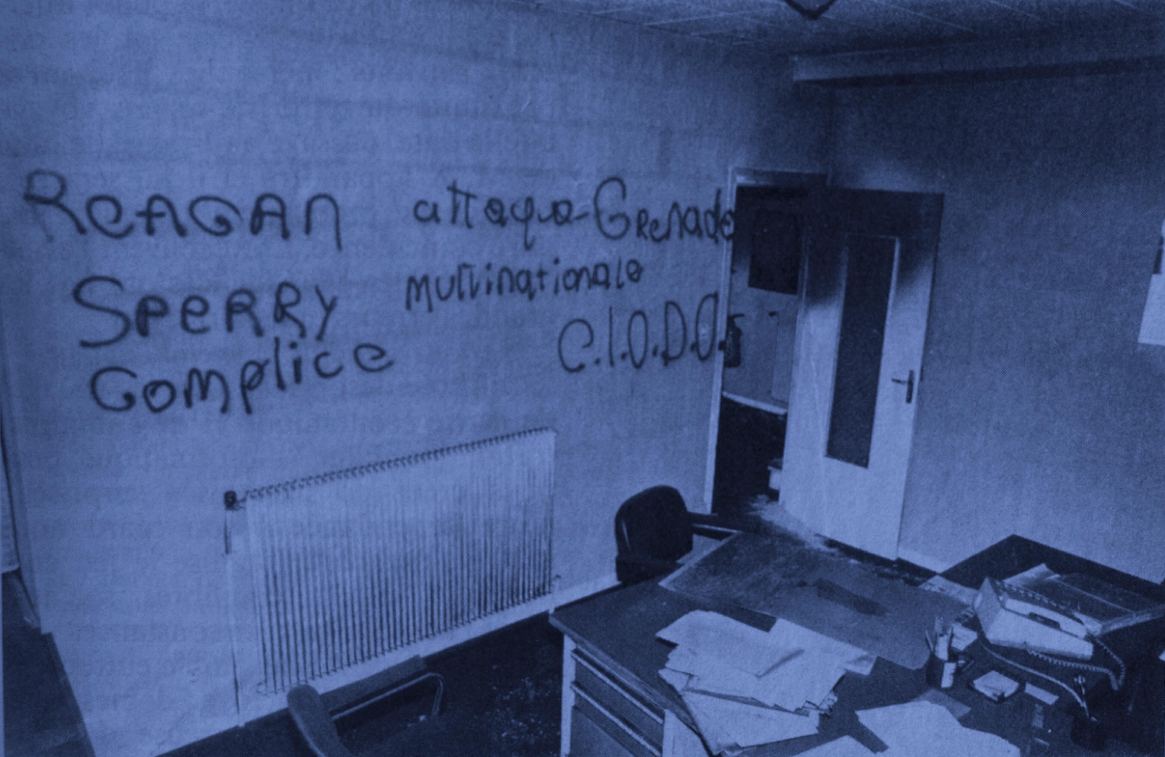 TD: You’re right to draw a connection between the violence of computation and that of CLODO. Each, in their own ways, fan the flames of destruction: computation through its embeddedness in the construction, guidance, and management of war machines; CLODO in the matches, explosives, and flames it weaponizes to undo them. CLODO’s willingness to follow computation on the path of destruction is what sets them apart from other groups who were active around the time, and the reason they caused such outrage. The French Communist Party [PCF] were so appalled by CLODO’s insistence on abolition over reform that they wrote opinion pieces in the newspaper declaring their own faith in computation’s potential in the struggle for workers’ emancipation. For example, they write: “Nothing justifies breaking the tools of labor. [We] underscore, by contrast, the immense possibilities offered by informatics and micro-electronics for the liberation of people from all forms of exploitation and oppression.” Like the 19th century machine-breakers before them, CLODO saw computation’s pretense of liberation as yet another measure of control, whoever’s hands it is in. Destruction is so baked into computation, CLODO wagered, its origins are so tainted with blood (remember: the first computer — the ENIAC — was designed to compute WW2 ballistic firing tables), that there was only one adequate response: to burn it to the ground.